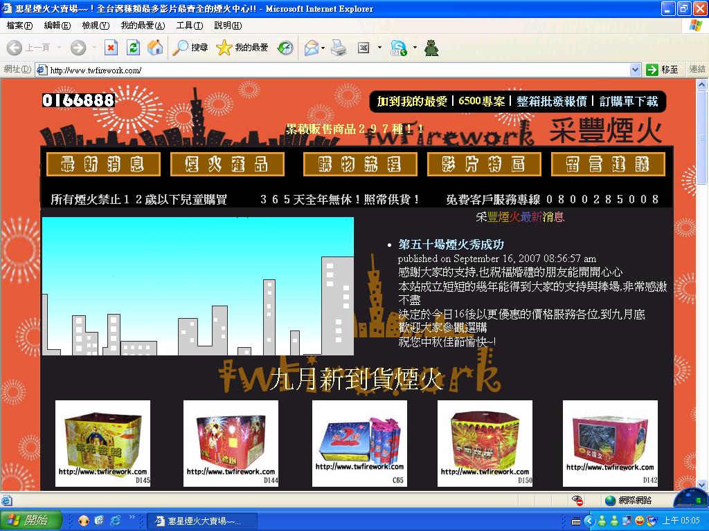 於民國94年開始於網路上開始測試販賣,於民國95年三月開始架設網站並抱持著讓客戶能夠安心的購買煙火為宗旨